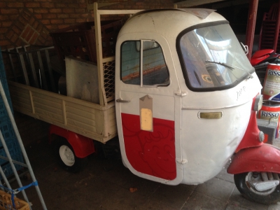 in 1965 gebouwde Piaggio Ape 450. (TukTuk)